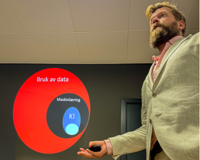 I sitt foredrag prøvde han langt på veg å berolige de som på kort sikt tror at maskiner og roboter skal ta over samfunnet ved hjelp av kunstig intellegens. I overskuelig framtid vil de enkelte maskiner være dedikert til relativt snevre oppgaver og dermed ikke selv skaffe seg kunnskap om oppgaver som den ikke er programmert for å løse.