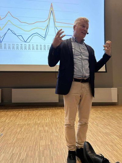Foredraget til Ola Honningdal Grytten var en makroøkonomisk tidsvandring fra 1814 til 2060, med vekt på dagens situasjon.